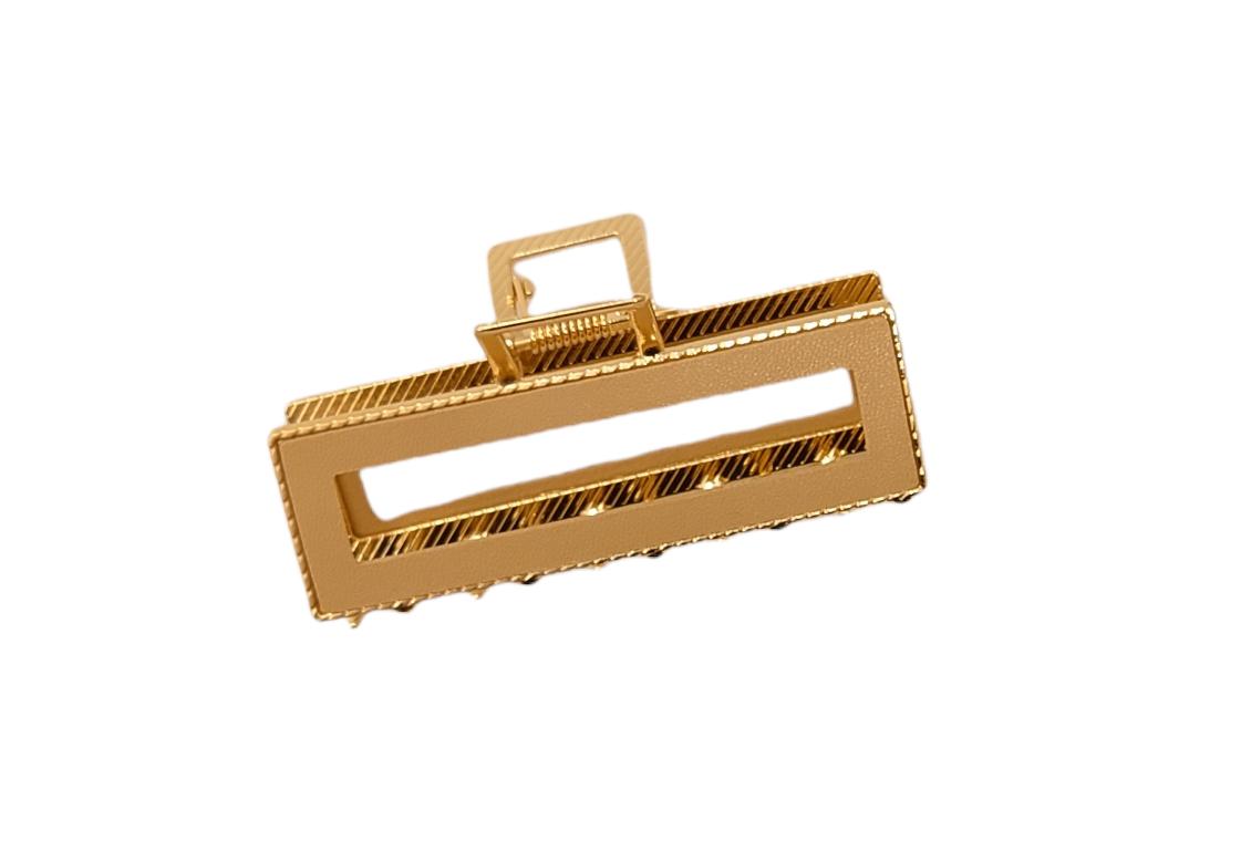 Lekker firkantet hårklype i metall og leather look. Lengde ca 9 cm