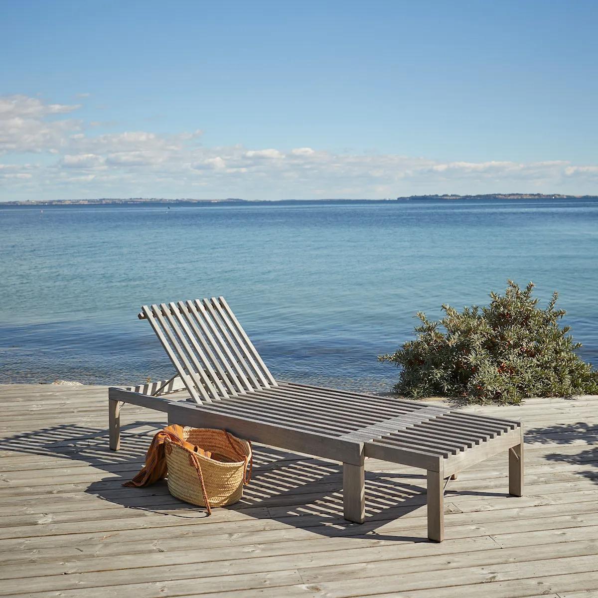 Riviera Solseng fra danske Skagerak er en ekte klassiker i kategorien utemøbler. Den populære solsengen Riviera Sunbed ble designet i 1990 av danske Povl B. Eskildsen og har blitt populær for sin fleksible og enkle design. Solsengen er laget av teak og er justerbar i lengden og ryggstøtten kan slås ned til en solseng. Riviera solseng ser flott ut i hagen eller på landstedet og kan ledsages av Riviera Lounge for et enhetlig utseende. For ekstra komfort er den heldekkende Riviera Cushion, tilpasset Riviera Solseng, tilgjengelig i seks forskjellige farger, hvorav to er stripete i blått og gult.